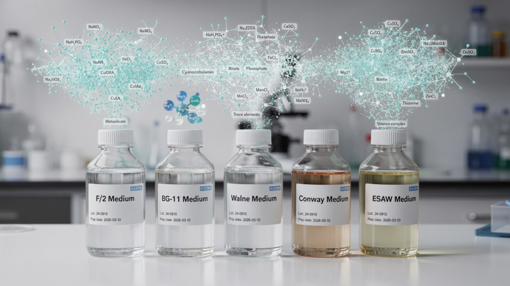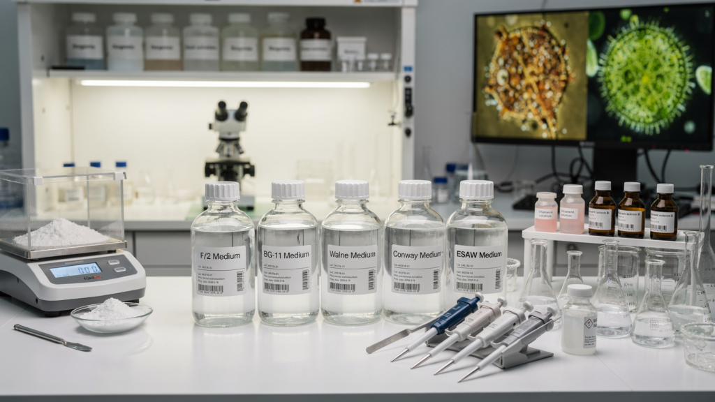Composition, préparation et adaptation des milieux de culture Les milieux de culture constituent la base de toute culture microalgale réussie.